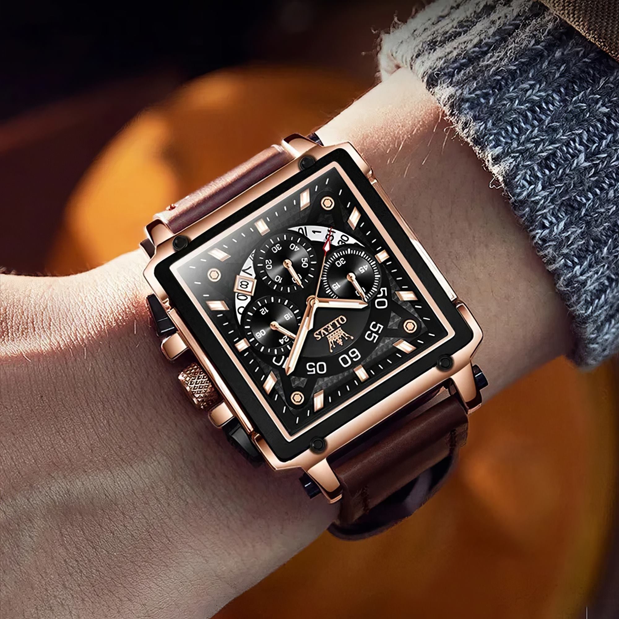 A striking timepiece with a bold square design that effortlessly blends modernity and sophistication. This watch is crafted for individuals who appreciate unique style, making it an ideal accessory for any occasion.