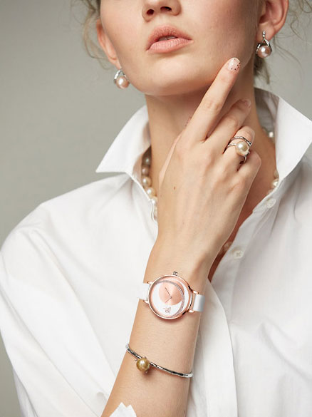 Elegance Elevated: Charme d'Ivoire showcases both captivating steel and leather bands, symbolizing precision and luxury. Its sophisticated design adds a timeless touch to your style effortlessly.