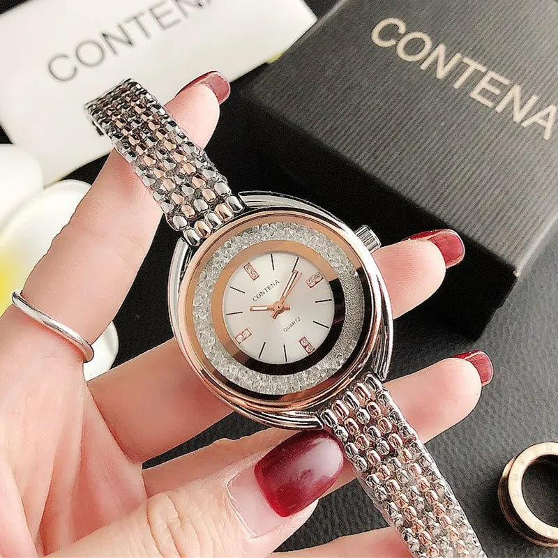 Elevate your wristwear with the Élégance Cachée Women's Luxury Steel Band Watch. It embodies elegance and precision, encapsulating unmatched luxury. Embrace sophistication and style with this exquisite timepiece today.