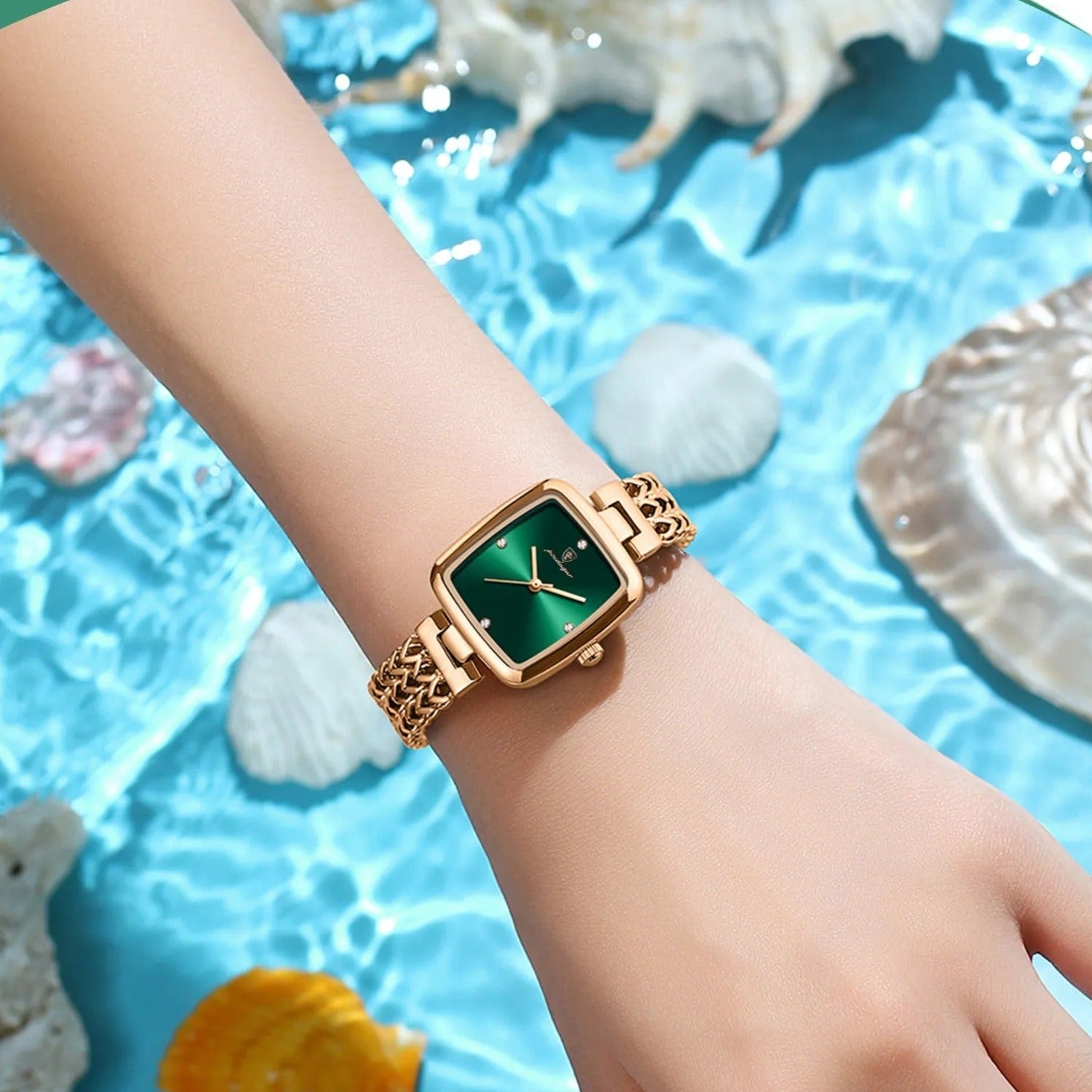 Elevate your wristwear with the Émeraude Étoilée Women's Luxury Steel Band Watch. It epitomizes elegance and precision, encapsulating unmatched luxury. Embrace sophistication and style with this exquisite timepiece today.