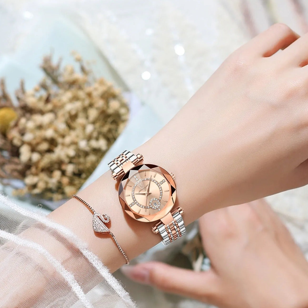 Timeless Beauty: The Fleur d'Amour watch marries classic and contemporary design seamlessly, epitomizing elegance in every detail. With a precise quartz movement, it enhances your style effortlessly.