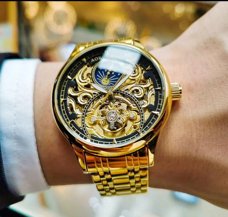 Introducing "Regal" - meticulously crafted for sophistication, blending innovative mechanics with sleek design. Embrace the artistry of time with every tick—an unrivaled testament to craftsmanship